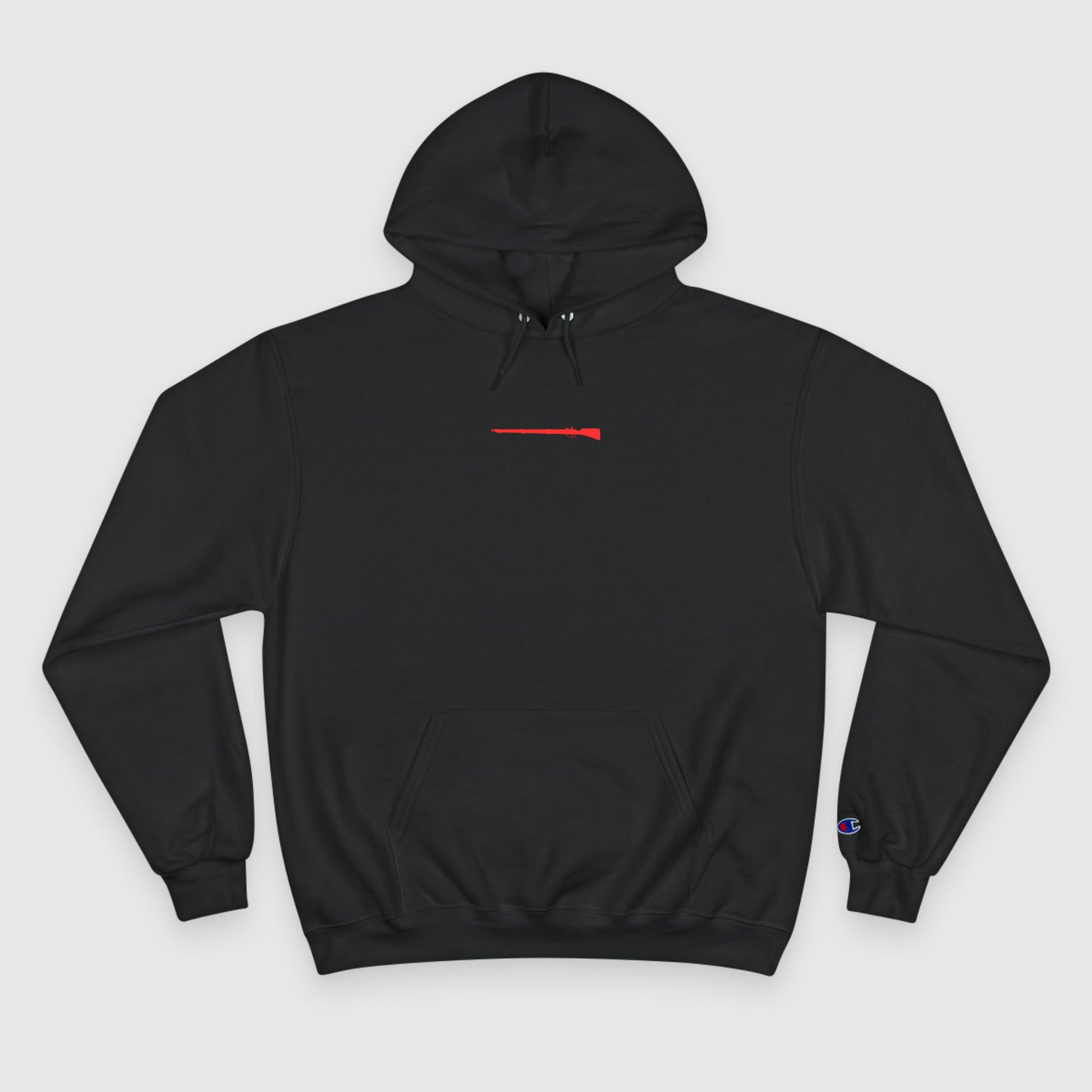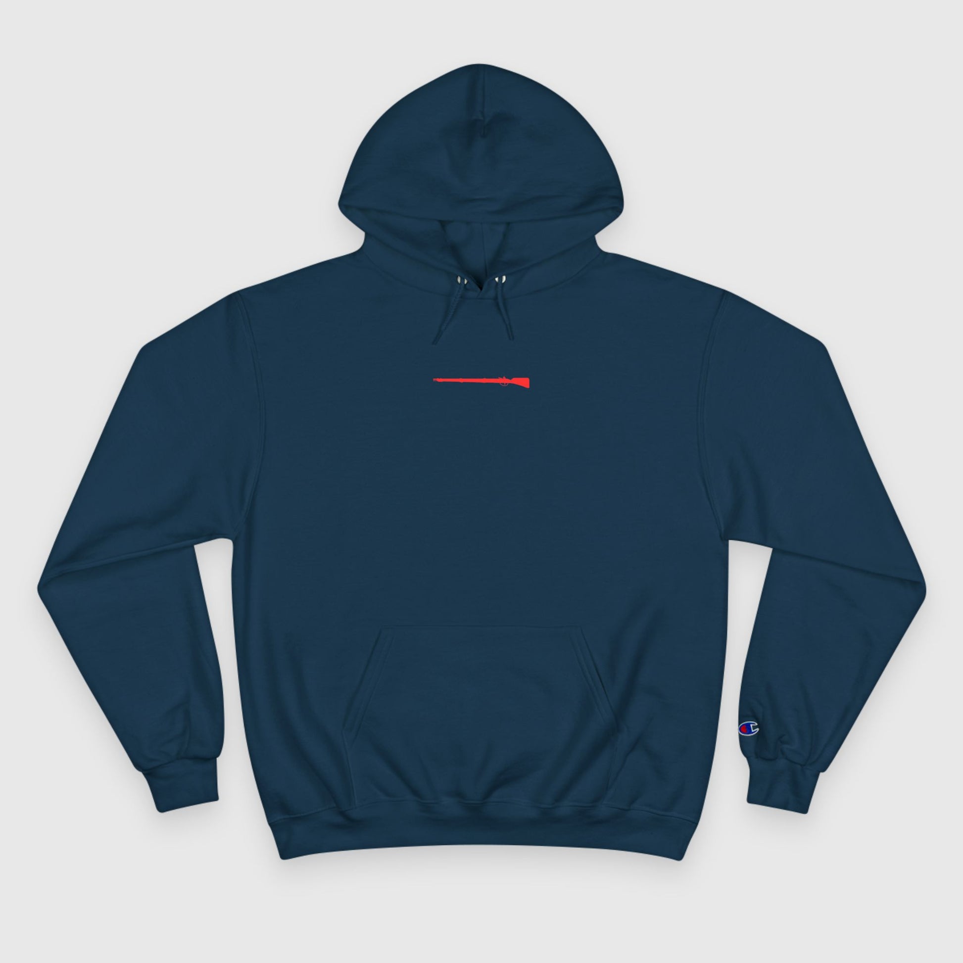 Welcome to America - if you don't like it you can get out. Our Red Rifle Champion Hoodie is a statement of the sacrifices given in order for us to live free today. Show your American pride with our simple red rifle logo, small but bold - printed on a custom Champion hoodie.
